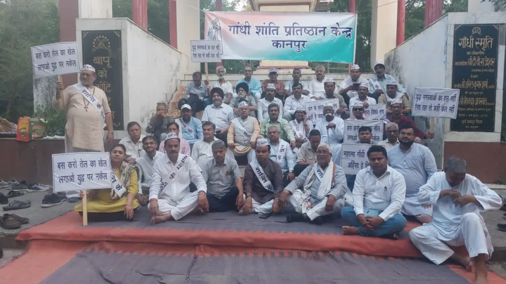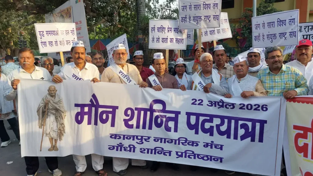 Kanpur (23rd April): The citizens of Kanpur came out on the streets on 22nd April to appeal for world peace and a permanent solution to the hostilities in the Gulf region. About 100 prominent citizens walked 2 kms along the arterial Mall Road from Bada Chauraha to Mahatma Gandhi’s statue in Phoolbagh.